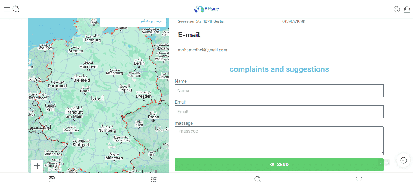 موقع Almasry Market هو متجر إلكتروني يوفر للمصريين في ألمانيا وأوروبا السلع الغذائية المصرية عالية الجودة التي لا غنى عنها في كل بيت مصري. نحرص على تقديم المنتجات الأساسية، السلع الموسمية، وأصناف المناسبات الخاصة بطعمها المصري الأصيل، مع خدمة شحن متاحة لجميع أنحاء ألمانيا وأوروبا. شركتنا مسجلة رسميًا في ألمانيا ومصرح لها ببيع المنتجات الغذائية لضمان الجودة والثقة.